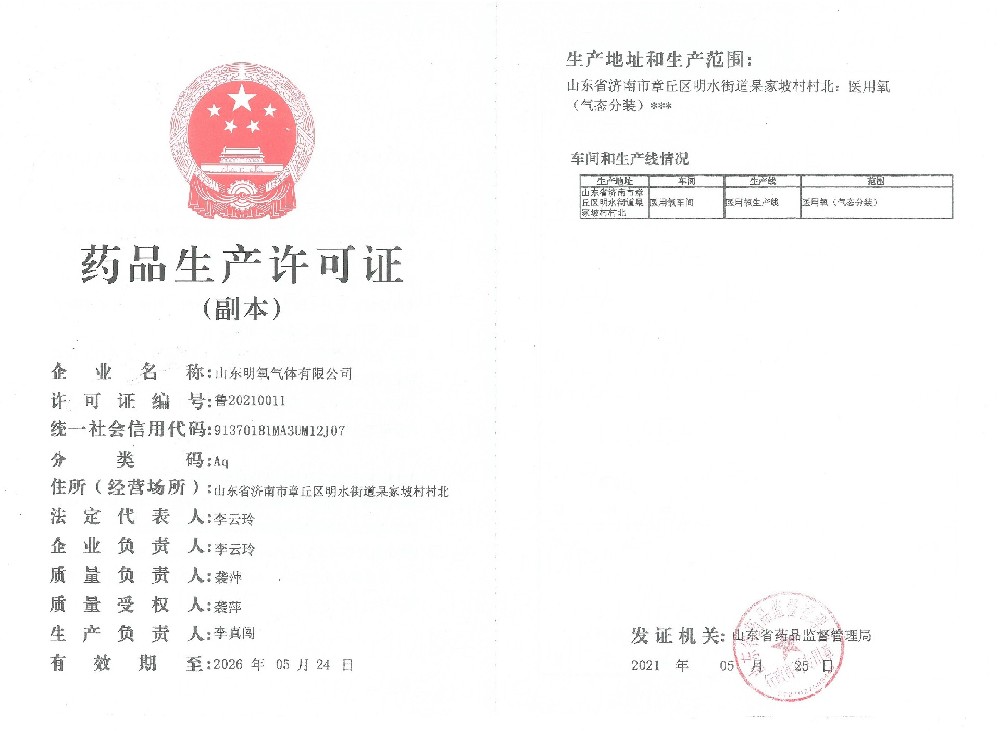 2022年12月取得國家藥品監(jiān)督管理局頒的藥品注冊證書,醫(yī)用氧項目正式投入生產(chǎn)